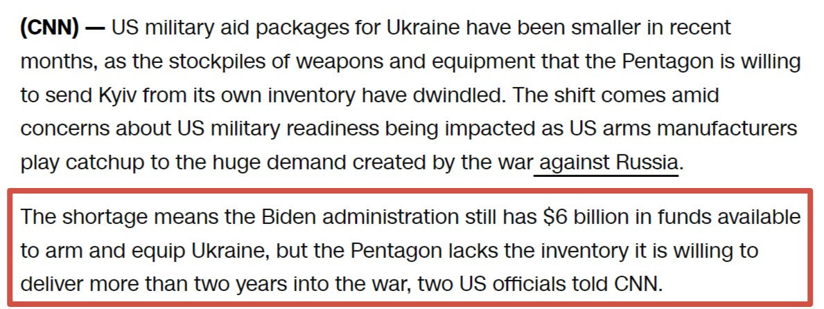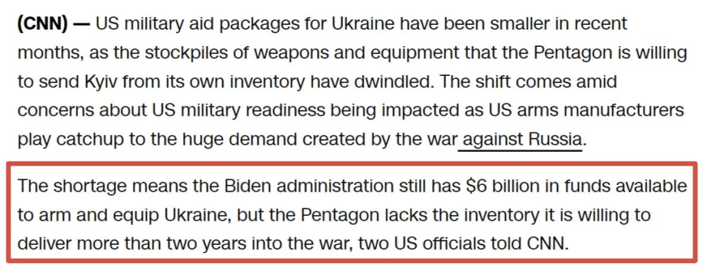 Le plus gros problème de l’Ukraine est sans doute le secret longtemps gardé de la situation désastreuse de l’Occident en matière d’armement et de production. Nous apprenons de plus en plus à quel point l’OTAN a été démilitarisée dans sa vaine tentative de soumettre la Russie