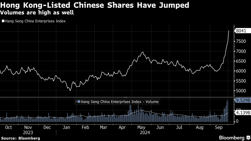 Vous avez probablement entendu dire que la Chine a annoncé une série de mesures destinées à stimuler son économie en difficulté. Et bien que les économistes se soient montrés sceptiques quant à l’efficacité probable à long terme de ces mesures de relance, elles ont déclenché une hausse spectaculaire des marchés boursiers en Chine continentale et à Hong Kong. Pas plus tard qu’aujourd’hui, Bloomberg décrivait comment les courtiers ont été submergés d’ordres d’achat dans un rallye boursier « unique en son genre » .