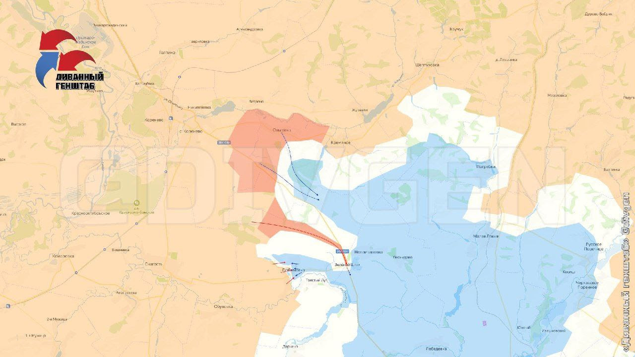Le plus important fut cependant l’avancée vers le sud, au-delà de Sinkovka récemment conquise, dans le nord, près de Kupyansk. Les forces russes atteignirent enfin Petropavlovka. Vous vous souviendrez peut-être que c’était le lieu de la fameuse « dernière bataille » des troupes russes contre les mercenaires occidentaux, l’un des épisodes les plus dramatiques et mémorables jamais filmés de toute la SMO.
