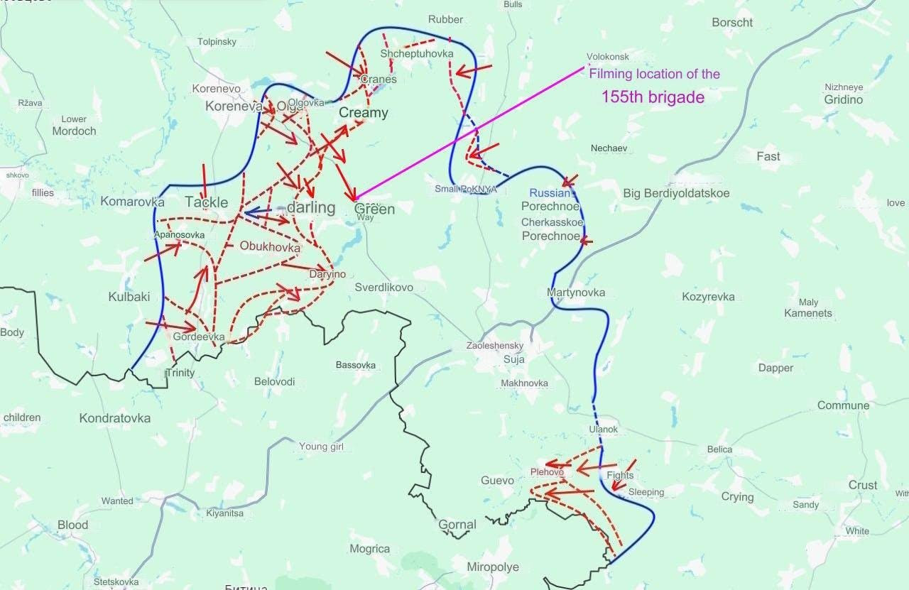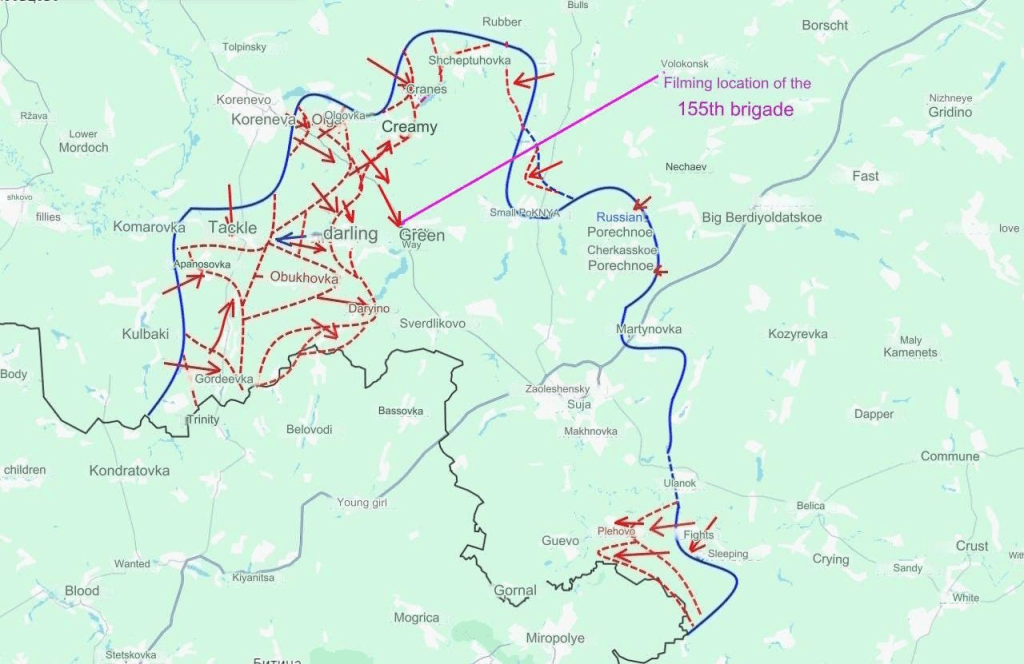 Comme on peut le voir ci-dessus, l’offensive a été principalement menée par les 155e Marines qui ont pris d’assaut la direction de Korenovo au nord-ouest, réduisant à nouveau les possessions terrestres ukrainiennes sur le territoire russe.