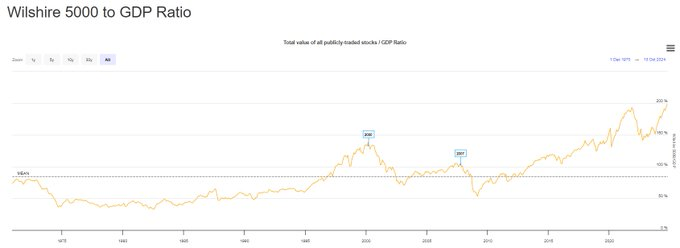 -qu’une hausse de ce ratio de Buffett est logique: a partir du moment ou le système est financialisé, la financialisation par définition est une augmentation de la masse de créances/droits/claims sur le système, que ces créances soient des dettes, des crédits ou des actions ; donc la financialisation en tant que telle modifie le ratio et rend caduc une partie de ses enseignements historiques. La financialisation c’est pour simplifier plus de « papier » pour une même masse de produits et d’actifs réels! Exemple si vous financiarisez l’or, ou l ‘immobilier, la ratio de la finance sur la même richesse réelle monte.