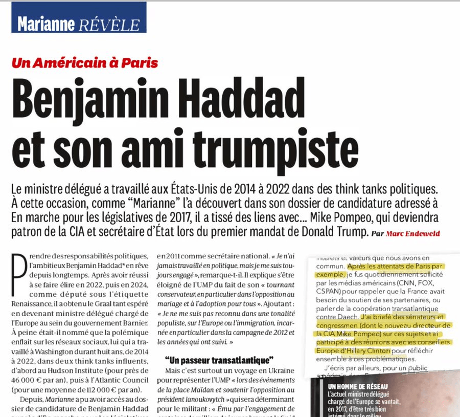 mon article sur le passé américain de Benjamin Haddad, ministre délégué chargé de l’Europe, avec une surprise à la clé : ses liens avec Mike Pompéo, faucon de l’ancienne administration Trump, ex patron de la CIA et secrétaire d’Etat…