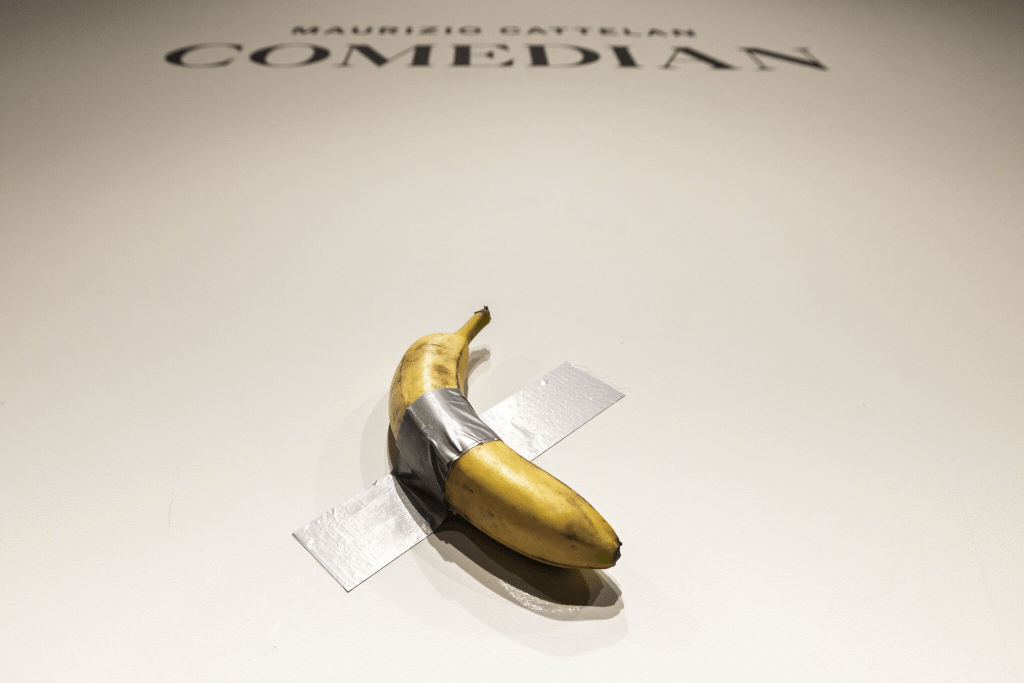 L’« œuvre » en haut de l’article s’appelle « Comedian » et a été installée à l’origine à Art Basel à Miami en 2019. Il y en avait à l’origine trois (hé, les bananes viennent en grappes, pourquoi les gaspiller comme nourriture ?), dont deux ont été vendues entre 120 000 et 150 000 dollars lors de l’exposition. La troisième a été vendue pour un montant plus élevé, non divulgué, et a été donnée au Guggenheim.