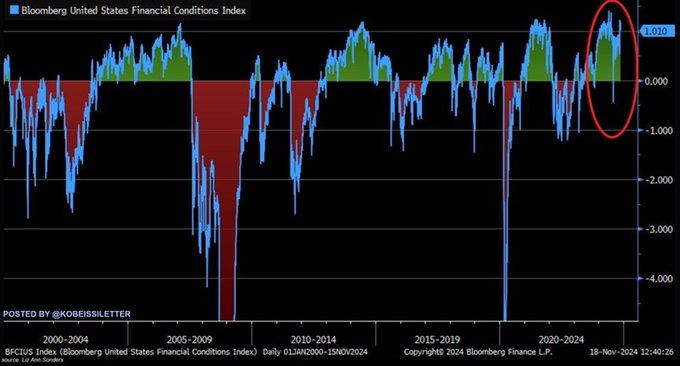Les conditions financières sont désormais encore plus faciles que les records précédents observés fin 2020 et 2021. Les conditions sont plus faciles que lorsque la Fed a réduit ses taux à près de 0 % du jour au lendemain en 2020.