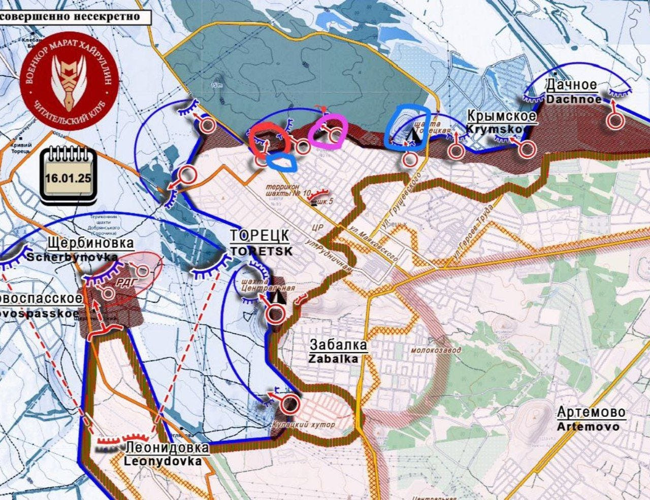 En fait, l’ennemi contrôle désormais principalement (sans compter la mine de Toretskaïa) le terril de la mine de Fomikha et une petite partie du quartier résidentiel à proximité. On peut affirmer que la défense ultérieure de l’ennemi dans la ville sera de courte durée, mais assez féroce, car sa perte de Toretsk offre à notre armée l’accès à Konstantinovka.