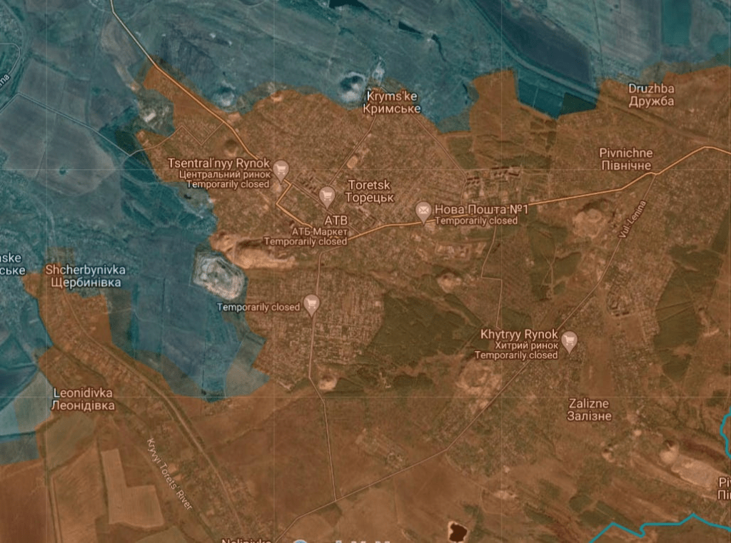 En plus de cela, Toretsk a également été entièrement prise aujourd’hui