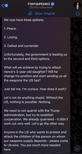 Comme il le mentionne, l’Ukraine tente désormais de se réconcilier avec Trump, les deux hommes devant se rencontrer cette semaine en Arabie saoudite pour tenter de concilier les deux pays. L’objectif, du côté de Trump, est de « jauger » dans quelle mesure Zelensky est désormais disposé à la paix, c’est-à-dire s’il a changé d’avis après avoir reçu une tape sur les doigts. Et c’était une tape, car il paraît que Trump a maintenant laissé entendre que la révocation des renseignements pourrait bientôt être annulée.