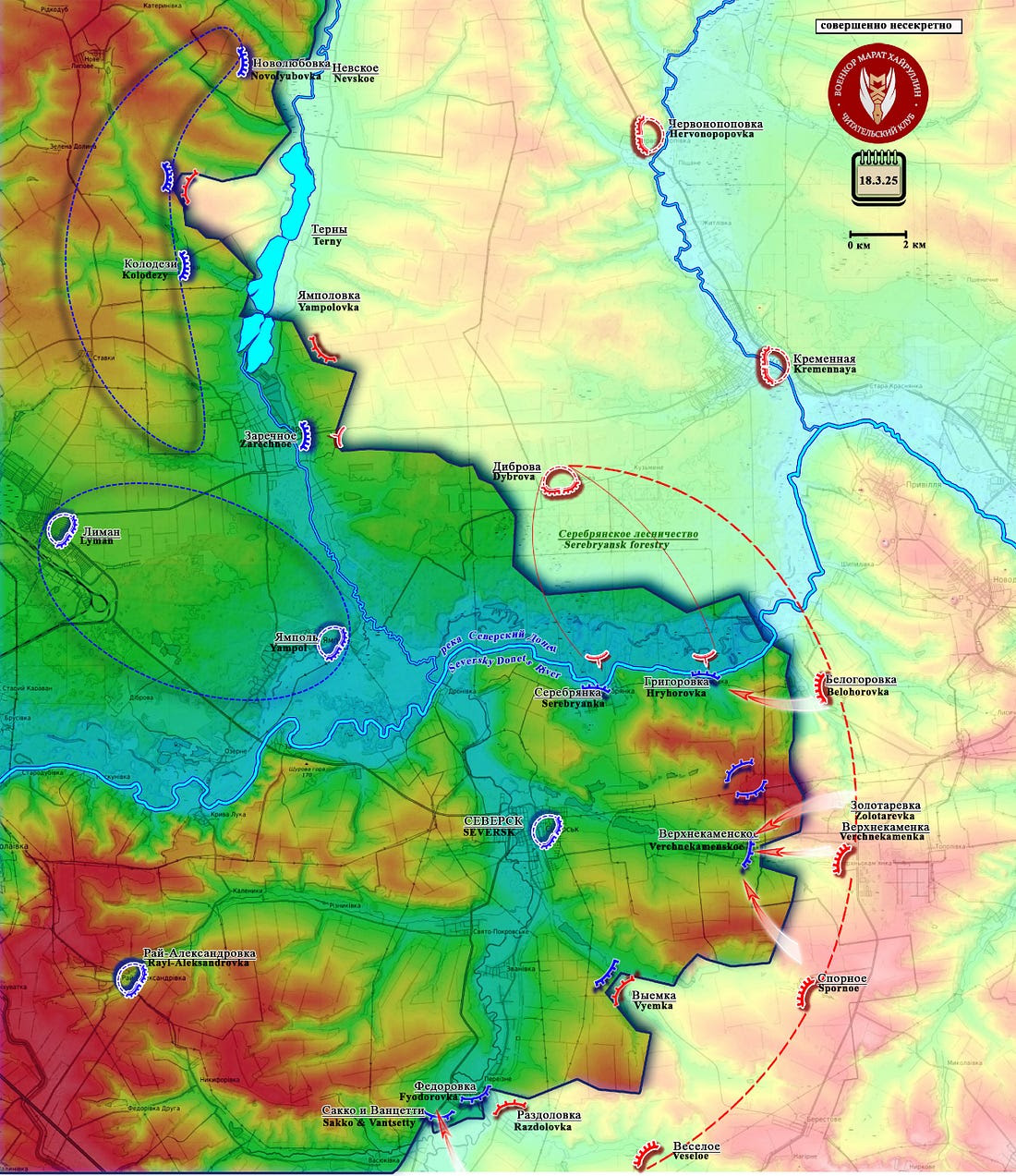 Nous avançons également vers cette agglomération depuis la direction de Liman, où nous avons percé la ligne de défense près de Kolodezi et nous nous dirigeons vers Torskoe-Zarechnoye.