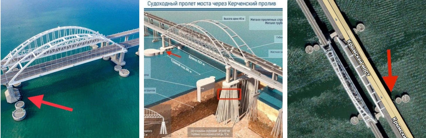 Je ne suis pas ingénieur en structure, mais l’Ukraine a affirmé avoir « endommagé » un pieu sous-marin essentiel à l’une des travées principales du Kertch