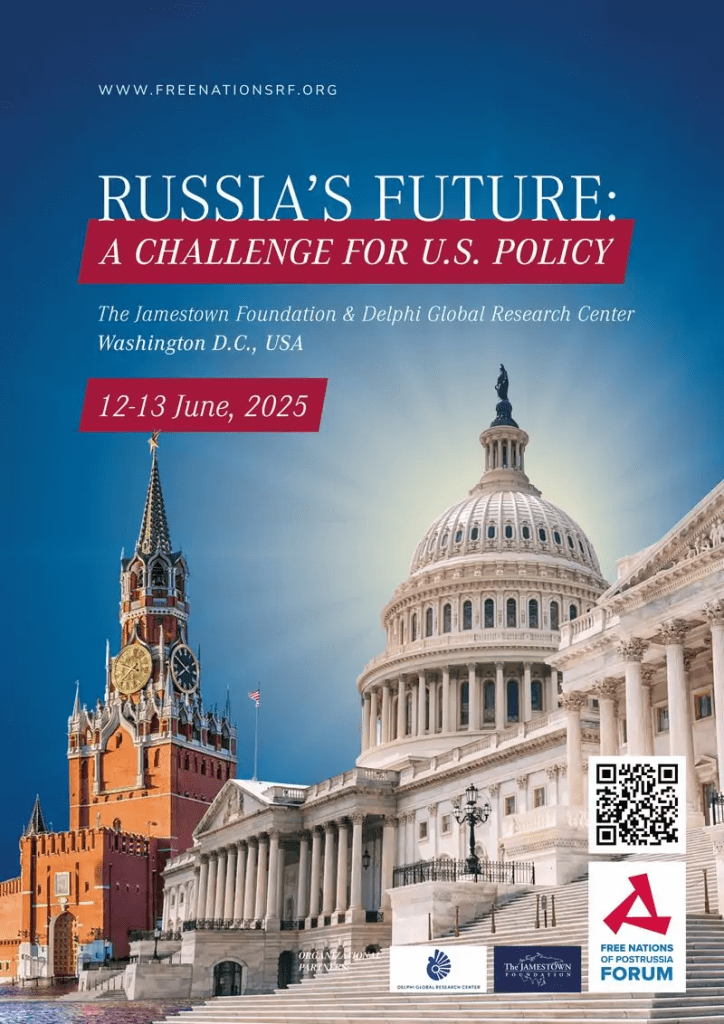 La conférence « L’avenir de la Russie : un défi pour la politique américaine » est organisée conjointement par la Fondation Jamestown, le Delphi Global Research Center et le Forum des Nations libres de l’après-Russie.  L’événement se déroulera en mode hybride et les participants sont encouragés à y assister en personne ( inscriptions ici ). Les débats seront également diffusés sur Zoom ( inscriptions ici ) et en direct sur la chaîne YouTube de la Fondation Jamestown ( diffusion en direct ici ). Nous nous réunirons le jeudi 12 juin 2025, à partir de 9 h, sur le campus de la Bush School of Government & Public Service de l’Université Texas A&M, au 1620 L St. NW, à Washington, DC 20036. Des rafraîchissements et un déjeuner seront offerts.