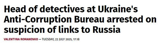 Pressentant le plan, Zelensky a pris des mesures préventives pour paralyser les organismes de surveillance de la corruption. Il a arrêté le « chef des enquêteurs » du NABU, soupçonné d’espionnage pour le compte de la Russie, peu de temps avant de soumettre à la Rada le projet de loi visant à opérer une « prise de contrôle hostile » de ces organismes de surveillance « indépendants » et à les placer sous le contrôle total de l’État.
