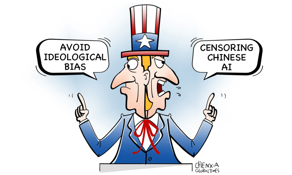 Au-delà de l’accent attendu sur le développement de l’IA, certains éléments relativement « nouveaux » méritent d’être mentionnés. Par exemple, il recommande de mettre à jour les directives fédérales en matière d’approvisionnement afin de « garantir que le gouvernement ne contracte qu’avec des développeurs de modèles linguistiques de pointe, de grande taille, qui garantissent l’objectivité et l’absence de parti pris idéologique hiérarchique », tout en prétendant évaluer si les modèles d’IA chinois sont soumis à la prétendue « censure » du gouvernement chinois.