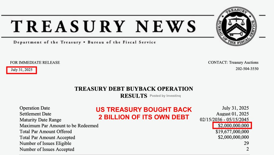 Le Trésor américain, sous le président Trump et son secrétaire au Trésor , Scott Bessent, a exécuté un rachat d’obligations qui mérite attention.