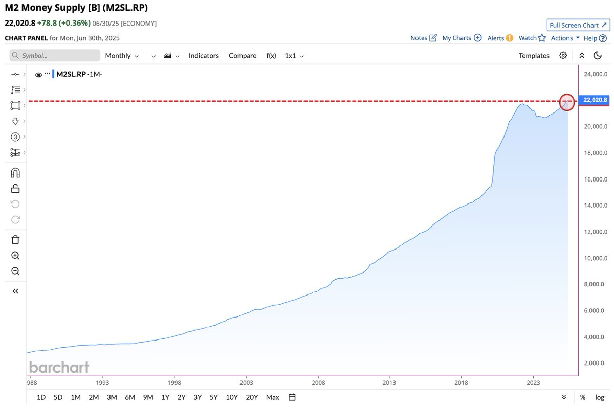 La masse monétaire M2 atteint un nouveau record historique de 22 000 milliards de dollars