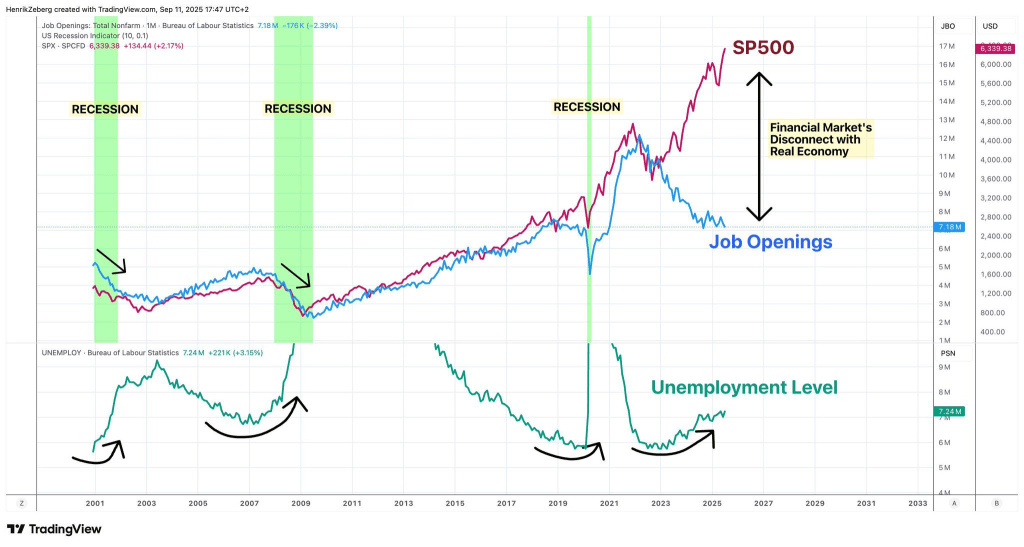 Les offres d’emploi diminuent, le chômage grimpe, mais le S&P 500 continue de grimper.