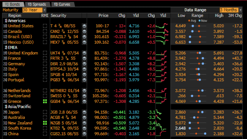 Journée difficile pour les rendements des obligations d’État à long terme, notamment dans les pays européens fortement endettés. Les rendements des pays fortement endettés, dont la France, avaient été tirés vers le bas ces dernières semaines par l’espoir d’une Fed très conciliante. La Fed a fait ce qu’elle a pu, mais cela n’a pas suffi. Les rendements s’envolent désormais.