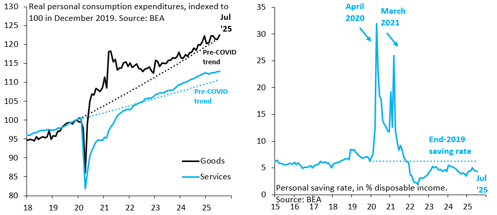 Ma théorie personnelle est que l ‘« épargne de précaution » accumulée pendant la COVID-19 n’est pas encore totalement épuisée, ce qui a permis aux ménages de lisser leur consommation malgré les chocs passés et maintenant grâce aux droits de douane.