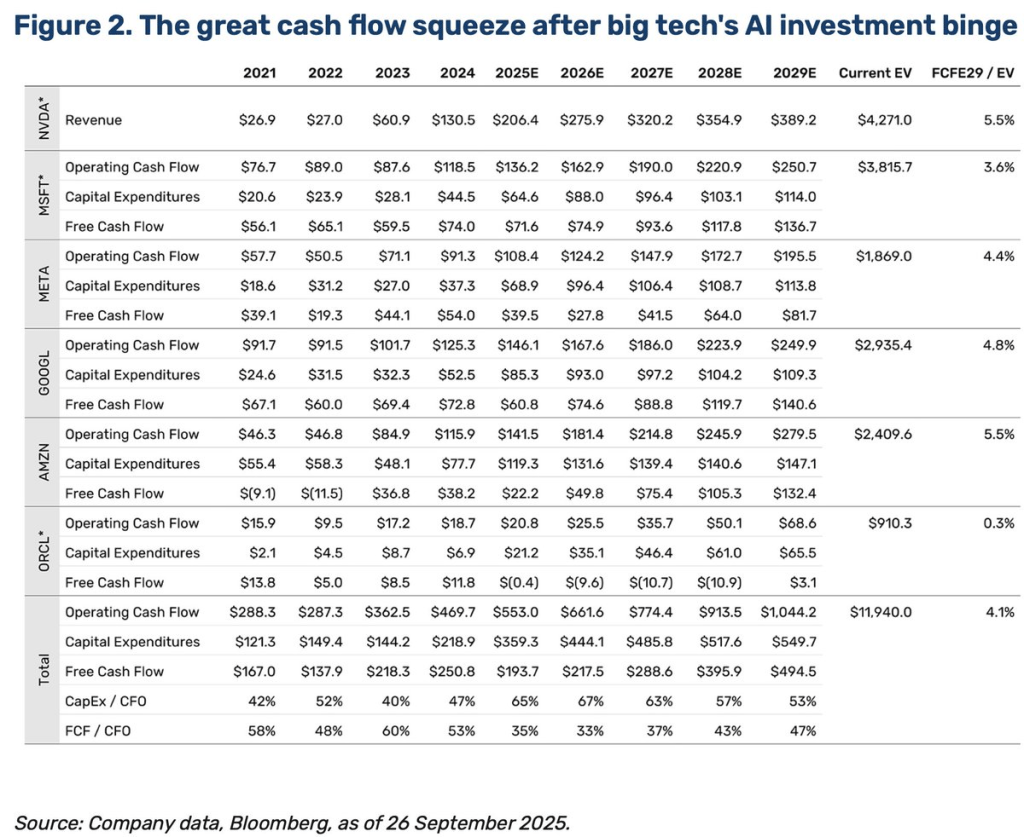 Les dépenses des Big Tech en matière d’IA ont explosé, les dépenses d’investissement atteignent des sommets alors que les flux de trésorerie disponibles bougent à peine.