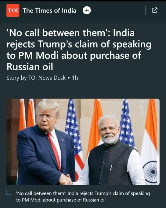 17 octobre 202517 octobre 2025 Trump a une fois de plus menti! L’Inde dement offciciellement qu’il y ait eu un entretien telephonique entre Trump et Modi au sujet des achats par l’Inde de pétrole russe. Partager : Partager sur X(ouvre dans une nouvelle fenêtre) X Partager sur Facebook(ouvre dans une nouvelle fenêtre) Facebook J’aime chargement… Similaire