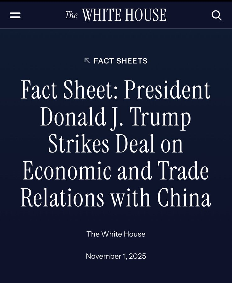 La Maison Blanche a publié le 1er novembre 2025 un « Fact Sheet » officiel, intitulé President Donald J. Trump Strikes Deal on Economic and Trade Relations with China. C’est un document concis (environ 2 pages), rédigé dans un ton triomphaliste typique de l’administration Trump : il présente l’accord comme une « victoire massive » pour les travailleurs, agriculteurs et sécurité nationale américains, en insistant sur des engagements concrets de la Chine (« China will… ») tout en minimisant les concessions US (comme les baisses de tariffs, qualifiées de « suspensions temporaires »). Il souligne la personnalisation maintenant de rigueur dans la politique américaine: c’est Trump qui strike le deal; bref on est dans l’entretien naif de la fameuse bulle celle dont je vous ai encore parlé récemment et cela accroit l’écart entre l’Imaginaire et le réel.