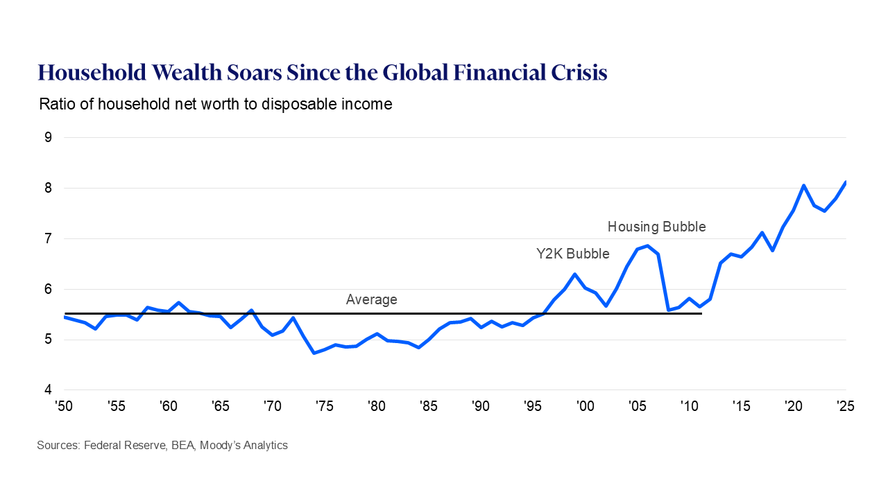 Mais compte tenu de l’ampleur des gains de richesse par rapport à la croissance des revenus et de l’économie en général – le patrimoine net des ménages représente désormais huit fois le revenu après impôt, contre une moyenne de 5,5 fois au cours des décennies entre la Seconde Guerre mondiale et la crise financière mondiale – il est judicieux de s’interroger sur la pérennité de cette situation.