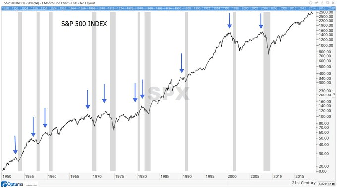 Historiquement, les actions baissent avant une récession, puis stagnent ou commencent à se redresser pendant la récession elle-même. Si nous étions réellement proches d’une récession aujourd’hui, ce serait la première fois depuis des décennies que le marché se trompe à ce point avant une telle crise.