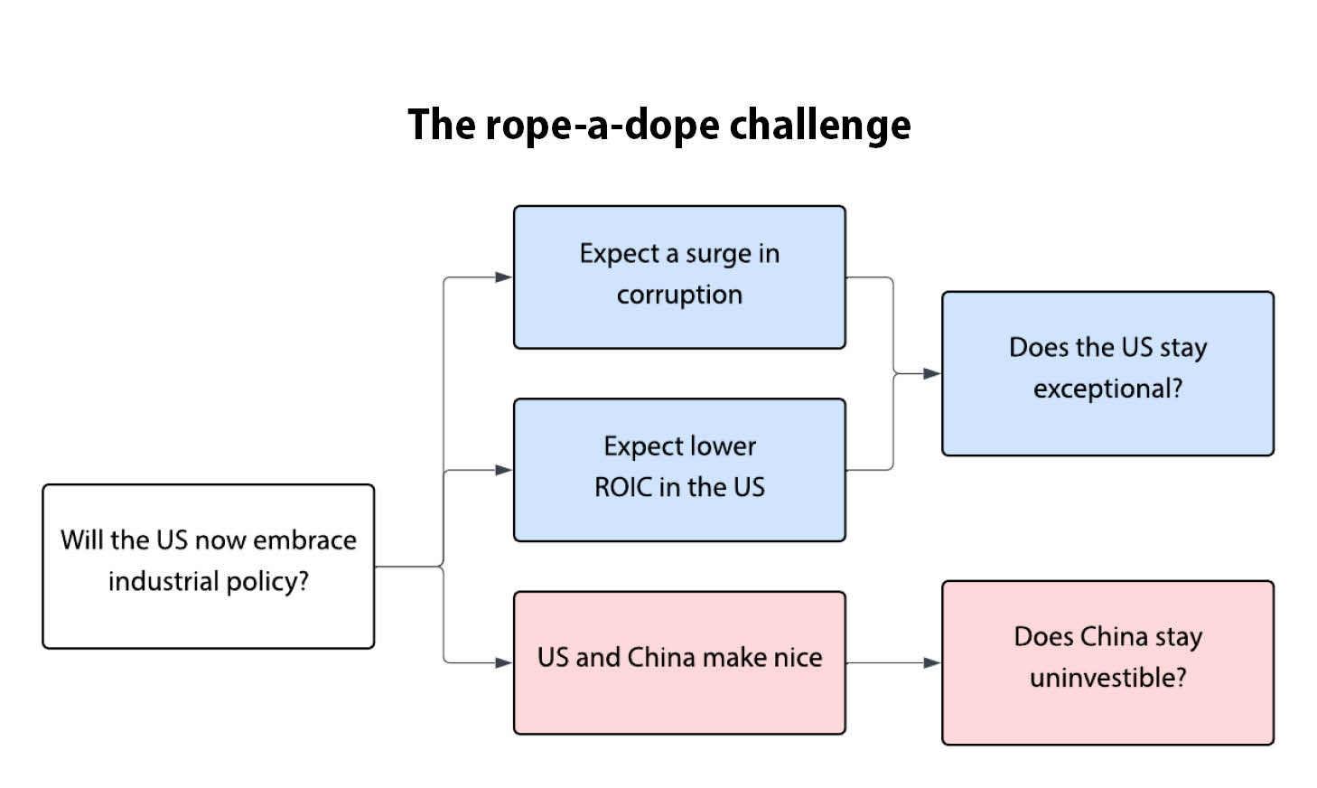 Pour reprendre la métaphore sportive, suivre la Chine sur la voie de la politique industrielle revient à affronter Mohamed Ali ou George Foreman à leur apogée. Toute personne sensée choisirait un autre sport – tennis, ski, natation – pour défier ces poids lourds, et éviterait la boxe. En bref, dans sa compétition avec la Chine, ne serait-il pas plus judicieux pour les États-Unis de miser sur leurs propres atouts plutôt que sur ceux de la Chine ?