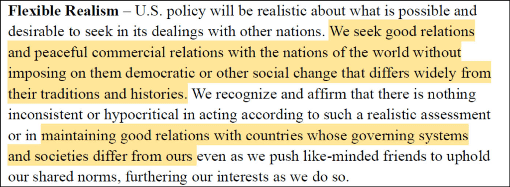 Et puis, bien sûr, il y a la dernière stratégie de sécurité nationale des États-Unis , récemment publiée par la Maison-Blanche. Celle-ci met en lumière :