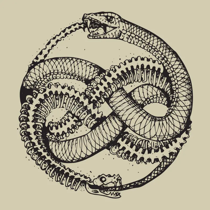 Le serpent se mord la queue. On dirait qu’ils se nourrissent. En fait, il est en train de s’auto dévorer.