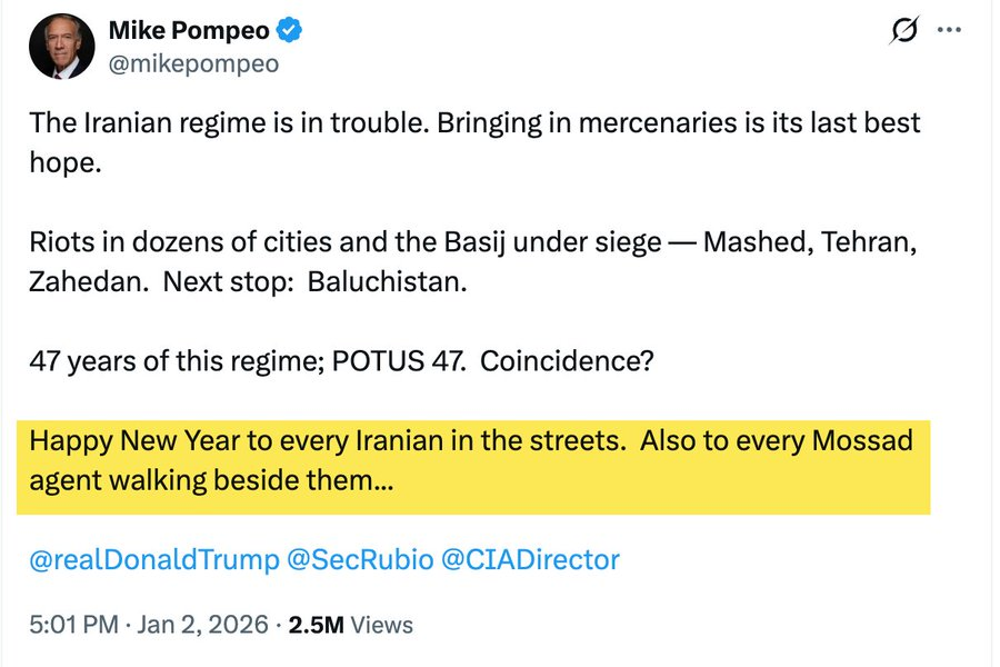 L’ancien directeur de la CIA de Trump et les plus grands journaux israéliens peuvent affirmer explicitement et clairement que le Mossad est omniprésent dans les manifestations en Iran, et pourtant, certains le nient et disent que seul un complotiste pourrait croire à une histoire aussi folle.