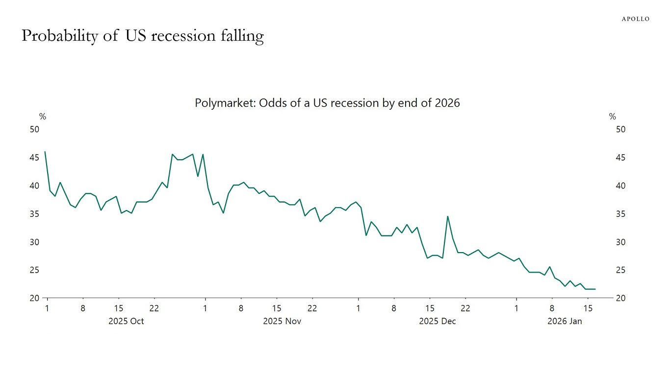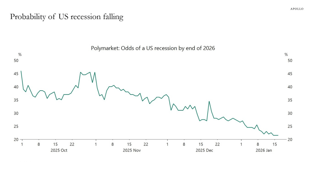 17 janvier 2026 La croissance américaine va réaccélérer La probabilité d’une récession en 2026 continue de diminuer , et le consensus continue de revoir à la hausse les prévisions de croissance pour l’année Partager : Partager sur X(ouvre dans une nouvelle fenêtre) X Partager sur Facebook(ouvre dans une nouvelle fenêtre) Facebook J’aime chargement… Similaire