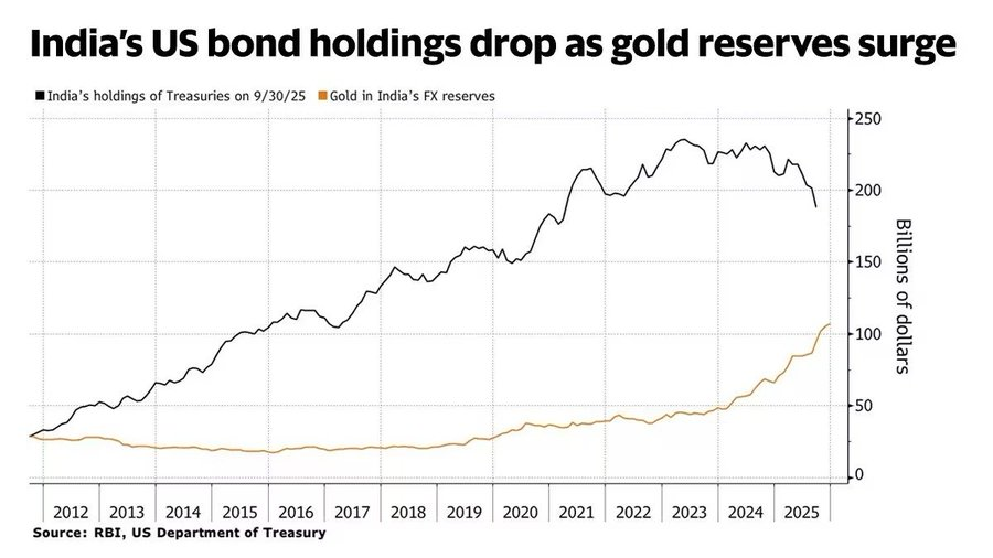 C’est une évolution stratégique claire et logique de la part de la RBI (Reserve Bank of India), confirmée par plusieurs sources récentes dont Bloomberg et des données du Trésor américain.