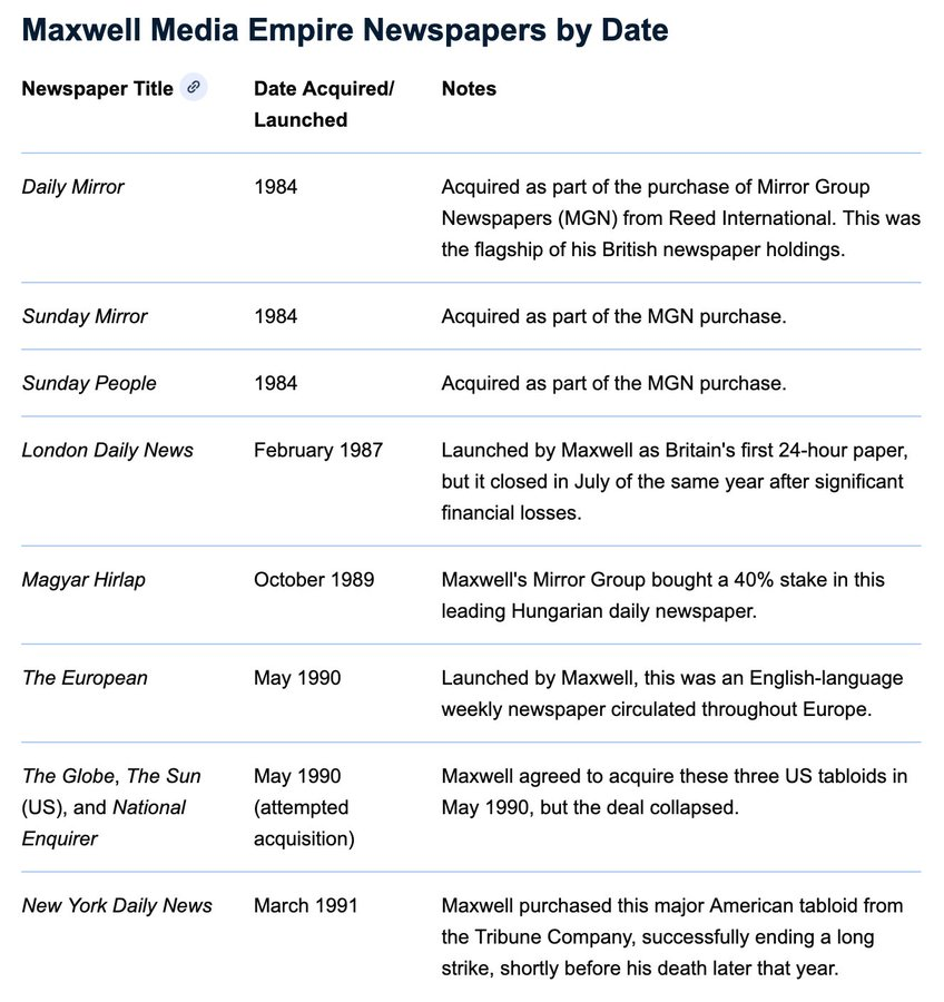 La première acquisition de Maxwell fut Pergamon Press, qui exerçait une domination considérable sur l’édition scientifique et universitaire. La notoriété des universitaires étant fortement liée aux citations de leurs travaux publiés, Pergamon conférait à Maxwell un pouvoir de négociation considérable sur les scientifiques et universitaires souhaitant publier des résultats confidentiels.