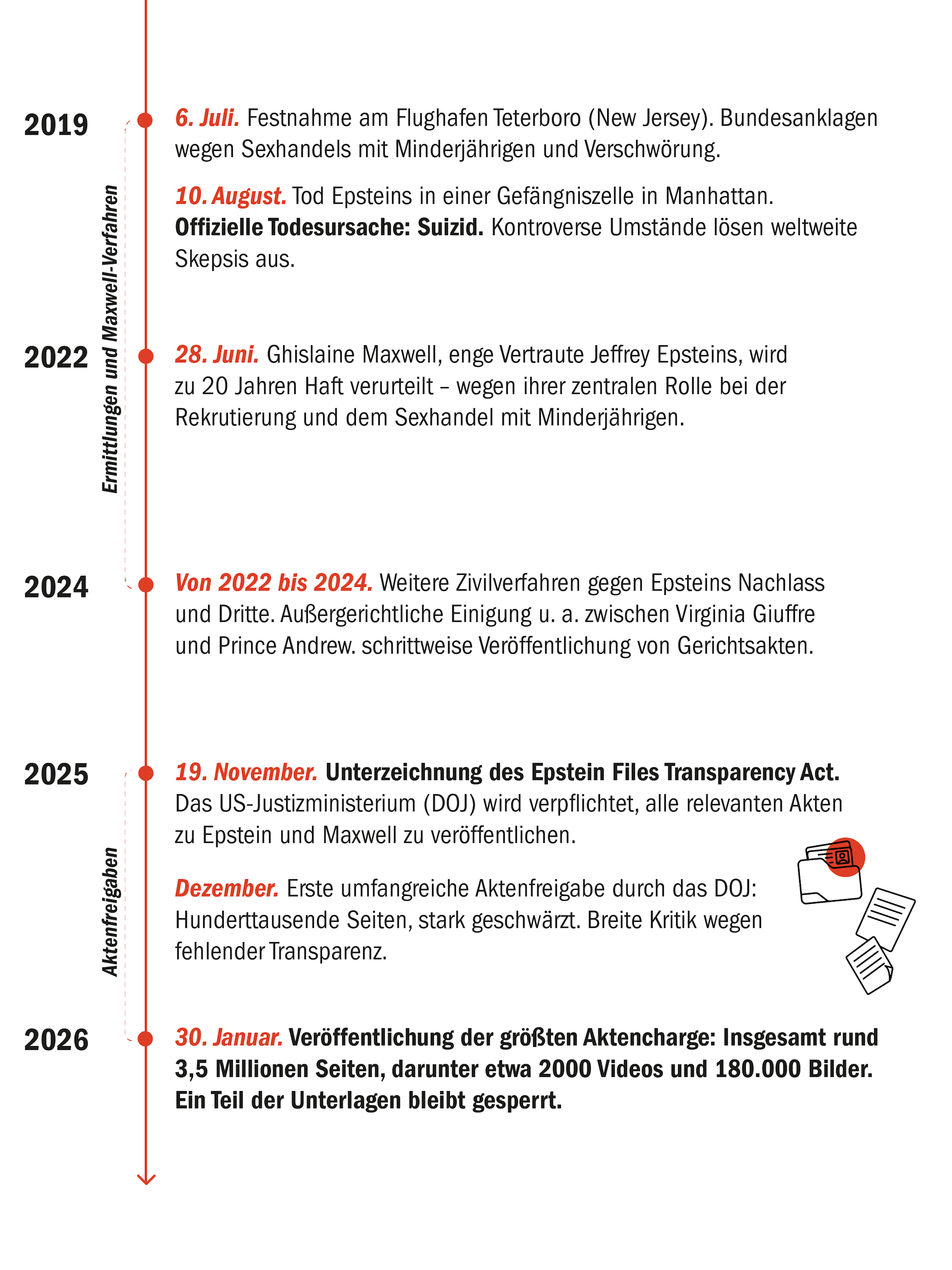 Les premières analyses des plus de trois millions de pages publiées fin janvier par le département de la Justice américain indiquent que l’influence d’Epstein sur les structures de pouvoir politiques et sociales occidentales étaient plus importante qu’on ne le pensait. Il ne s’agit plus seulement des agissements d’un individu, mais d’un réseau qui s’étendait à la politique, aux affaires et aux cercles du pouvoir international.