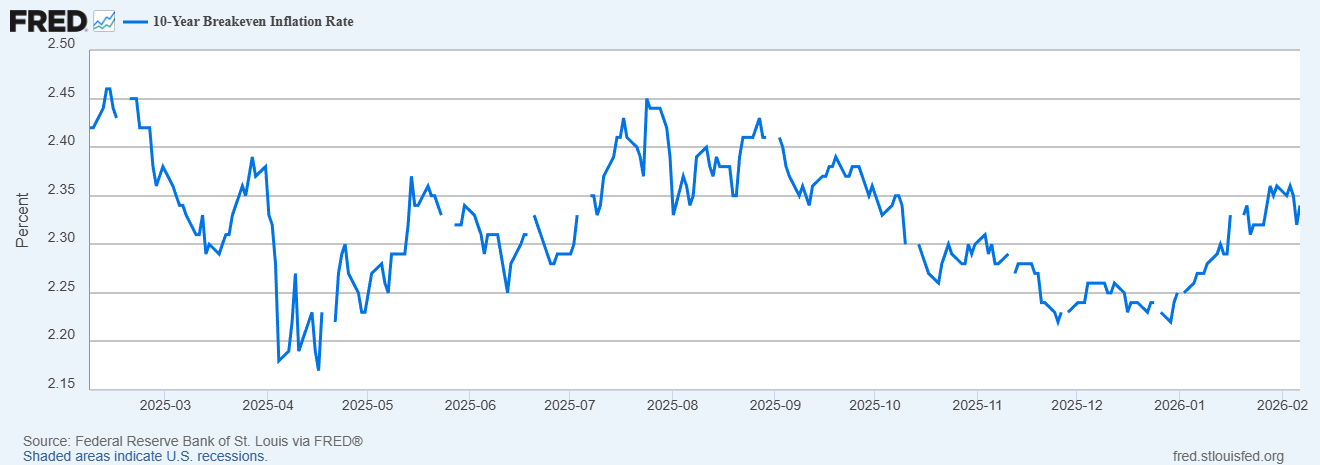 Le rendement des TIPS à 10 ans a baissé de 2 points de base au cours du dernier mois et est resté inchangé depuis août 2023.