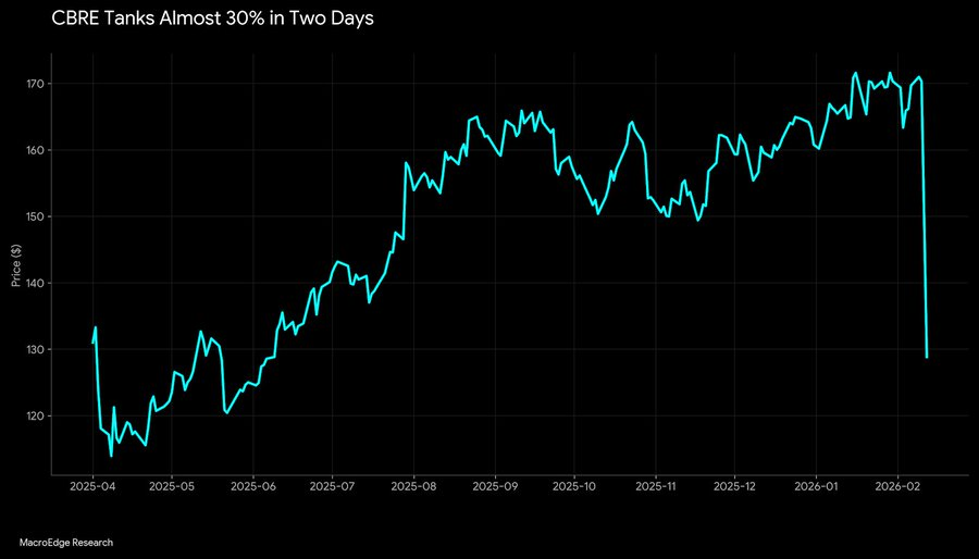 L’IA est un titre accrocheur, mais elle n’explique pas une chute de 30 % en deux jours. L’impact disruptif de l’IA se fait lentement, sur plusieurs années, au niveau des marges. Ce type de mouvement est lié à la liquidité et aux commissions. CBRE est un indicateur des transactions immobilières et des opérations de refinancement. Ainsi, lorsque les taux de capitalisation se réajustent, que les prêteurs resserrent leurs conditions et que la formation des prix se bloque, les volumes et les commissions disparaissent en premier. .