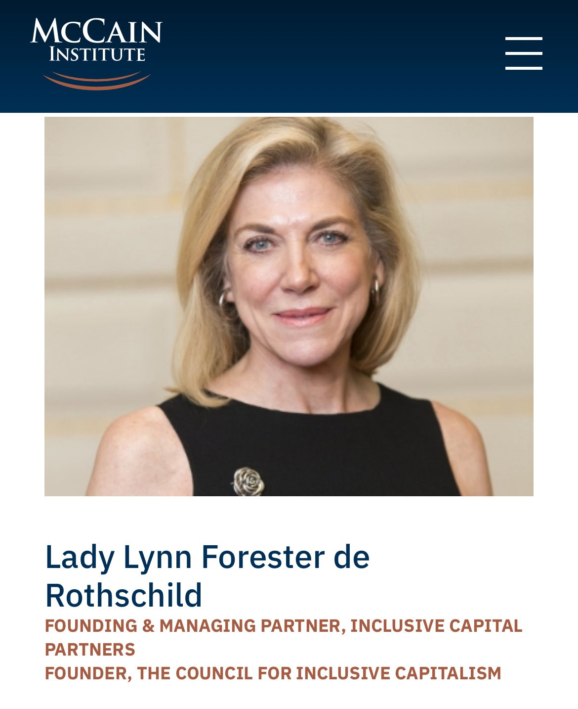 - Lady Lynn Forester de Rothschild, fondatrice et associée gérante d’Inclusive Capital Partners