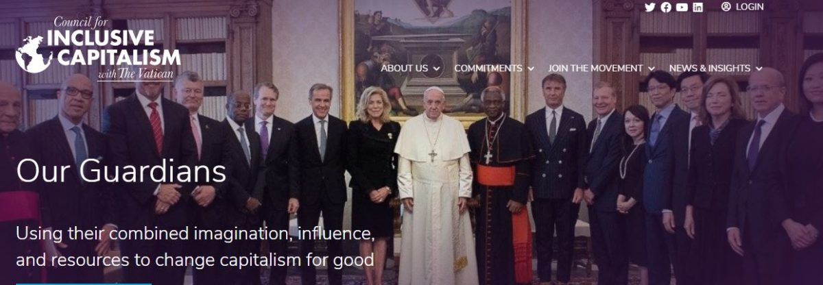 Selon sa propre définition, il s’agit d’une organisation mondiale à but non lucratif créée sous l’égide du Vatican et sous l’égide morale du pape François : « Notre mission est de mobiliser le potentiel du secteur privé pour bâtir un monde plus inclusif, durable et fiable sur le plan économique. Le Conseil est dirigé par un groupe de dirigeants d’entreprises et de personnalités publiques, les Gardiens du capitalisme inclusif, qui se réunissent chaque année avec le Vatican. »