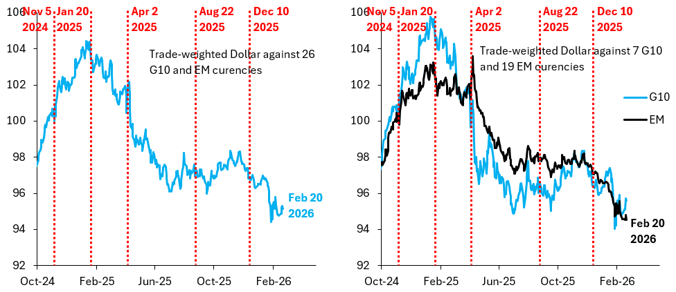 La chute du dollar suite à la décision de la Cour suprême hier éclaire également les événements d’avril 2025. Comme je l’ai déjà expliqué, cette forte baisse n’était pas liée aux droits de douane. Elle reflétait plutôt la perception d’une politique américaine chaotique et amateur, une perception que la décision de la Cour suprême n’a fait que renforcer.