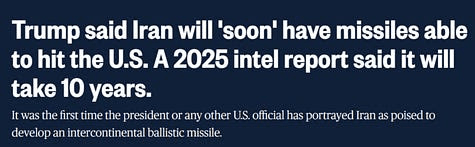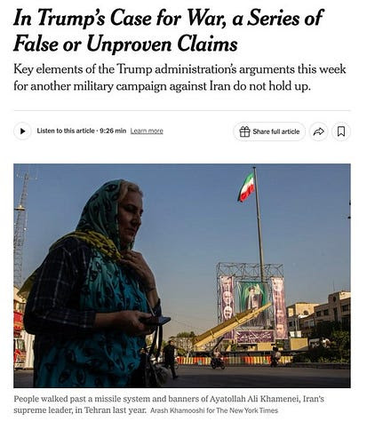 Et le NYT a de nouveau travaillé sans relâche pour réfuter les justifications de Trump en faveur de la guerre :