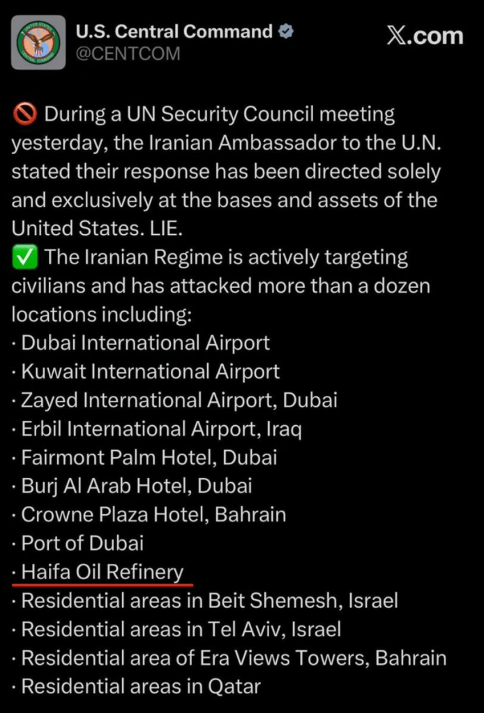 L’autre versant de la strategie est de frapper tous ceux qui de pres ou de loin sont allies des USA et leur facilitent la tache ce que Trump n’avait pas envisagé; or ce sont des cibles molles ! Les militaires iraniens se sont ralliés a une sorte de thèse de coalition implicite contre eux et ils considerent que leur survie existentielle etant menacée, ils ont le droit de frapper sur des cibles peripheriques, y compris des hotels qui abritent des militaires US ou sont importants economiquement.