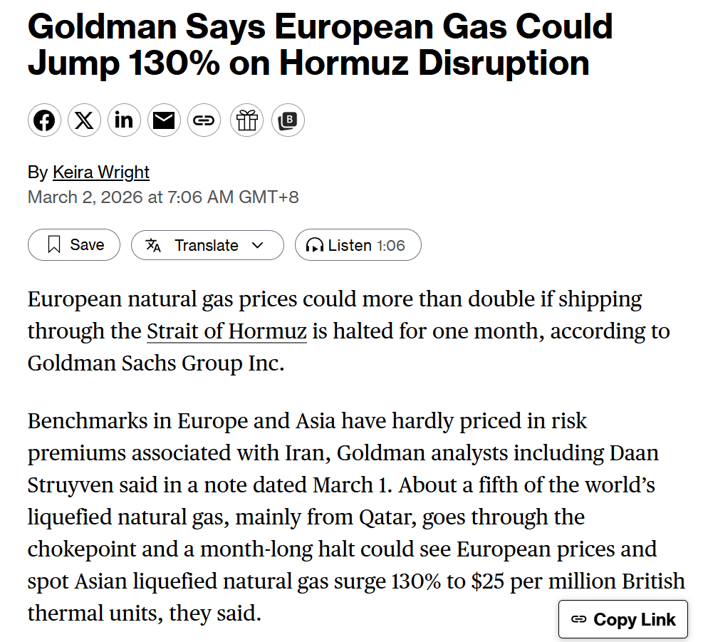 Le prix du gaz naturel néerlandais TTF a bondi de plus de 50 % après l’arrêt de la production par le Qatar à Ras Laffan, le plus grand complexe de GNL au monde, suite à des attaques de drones et à des évaluations des dégâts.