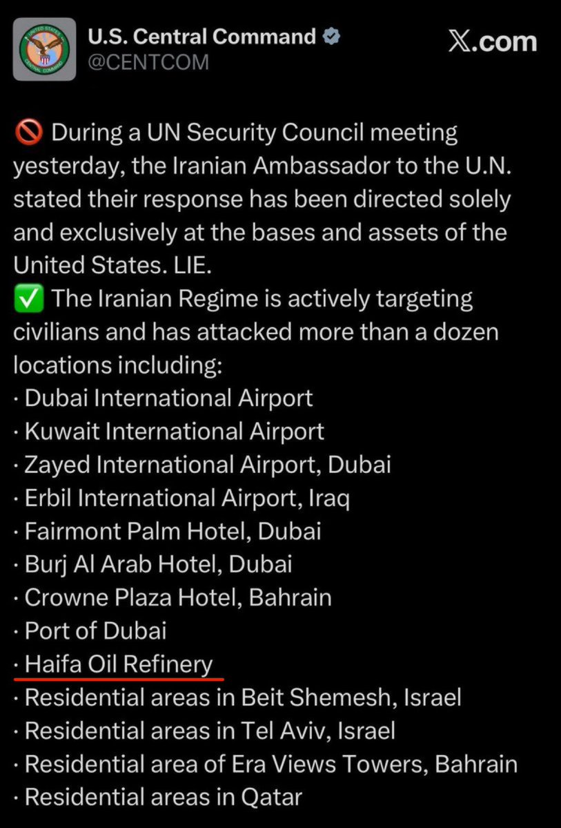 - « Le Corps des gardiens de la révolution islamique (CGRI) a déclaré que le radar THAAD du réseau de défense antimissile israélien situé à Al-Ruwais, aux Émirats arabes unis, avait été entièrement détruit par une frappe de missile de précision menée par les forces aérospatiales du CGRI. »