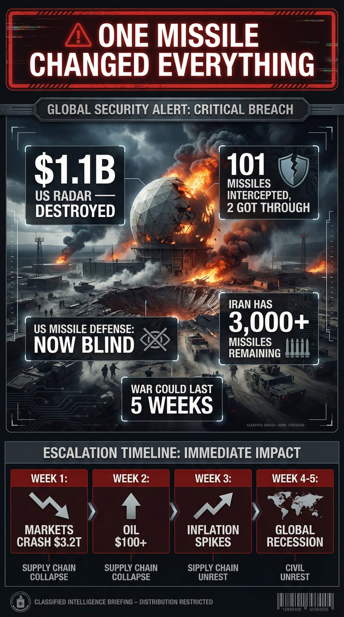 L’Iran vient de détruire « un équipement d’une valeur de 1,1 milliard de dollars, qui a nécessité des années de construction et qui ne peut être remplacé dans aucun délai pertinent pour cette guerre ».