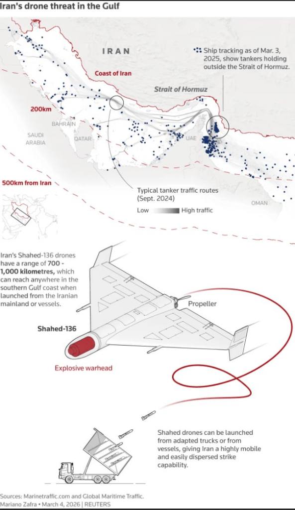 L’Iran attaque un pétrolier américain dans le nord du golfe Persique ; le navire est en feu – IRCGTÉHÉRAN, 5 mars – L’armée iranienne a touché un pétrolier américain dans le golfe Persique ; le navire est en feu, a déclaré jeudi le Corps des gardiens de la révolution islamique (CGRI).« Le pétrolier a été touché ce matin dans la partie nord du golfe Persique par les forces navales des Gardiens de la révolution et [le navire] est maintenant en feu », a déclaré le Corps des gardiens de la révolution islamique dans un communiqué.Par ailleurs, le Corps des gardiens de la révolution islamique (CGRI) a déclaré que le détroit d’Ormuz est sous le contrôle de l’Iran et que les navires des États-Unis, d’Israël et des pays européens ne le traverseront pas.