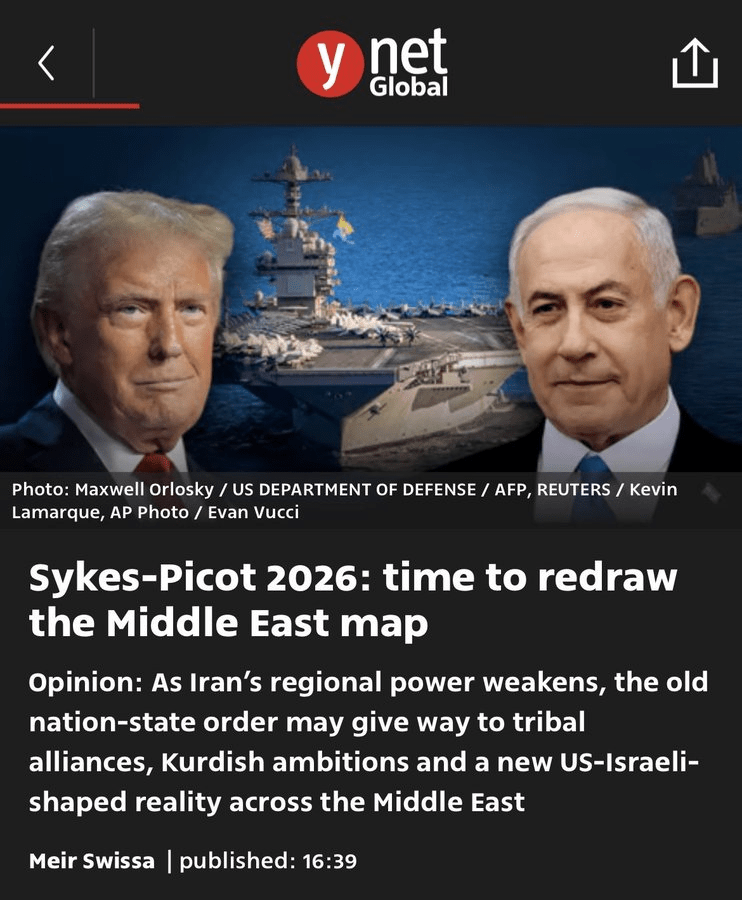 Yedioth Ahronoth, le plus grand quotidien israélien en termes de diffusion, appelle ouvertement à la balkanisation et au redécoupage de la carte du Moyen-Orient.