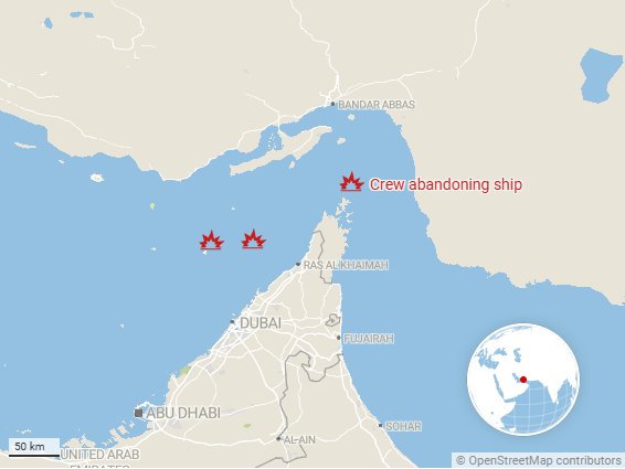 La Royal Navy a signalé un incendie à bord d’un cargo après qu’il a été touché par un projectile dans le détroit d’Ormuz. Un navire non identifié a signalé avoir été touché par un projectile inconnu à environ 11 milles nautiques (20 km) au nord des côtes d’Oman, selon l’UKMTO (UK Maritime Trade Operations). Le navire a demandé de l’aide et l’équipage est en cours d’évacuation.