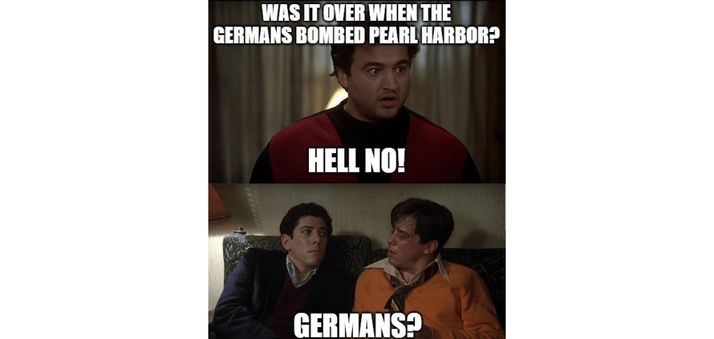 Et puisqu’on parle d’Animal House, difficile d’écouter la conférence de presse impromptue de Trump à bord d’Air Force One mardi, d’où est tirée la citation en début d’article, sans repenser à la scène où Polochon est désespéré après que les membres plus âgés de la fraternité ont saccagé la voiture de son frère. C’est alors qu’Otter, le charmant responsable des activités sociales de la fraternité, lui adresse ces paroles réconfortantes.