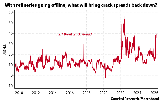 Tout cela signifie que même si le détroit d’Ormuz rouvre demain, les écarts de prix du crack resteront probablement importants…