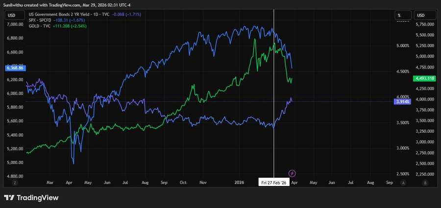 Les rendements courts et à 2 ans s’envolent; l’or et les actions souffrent de ventes pressantes.